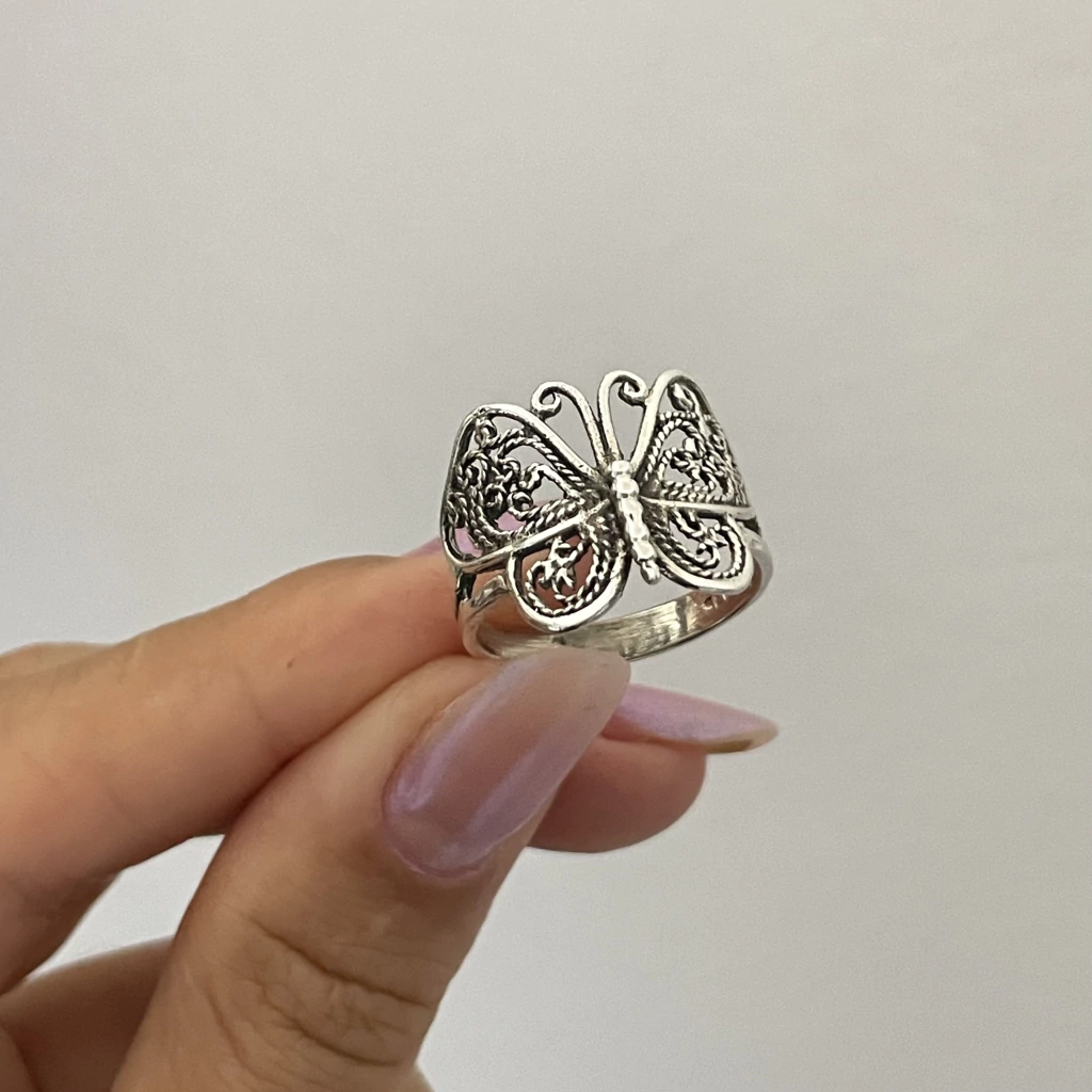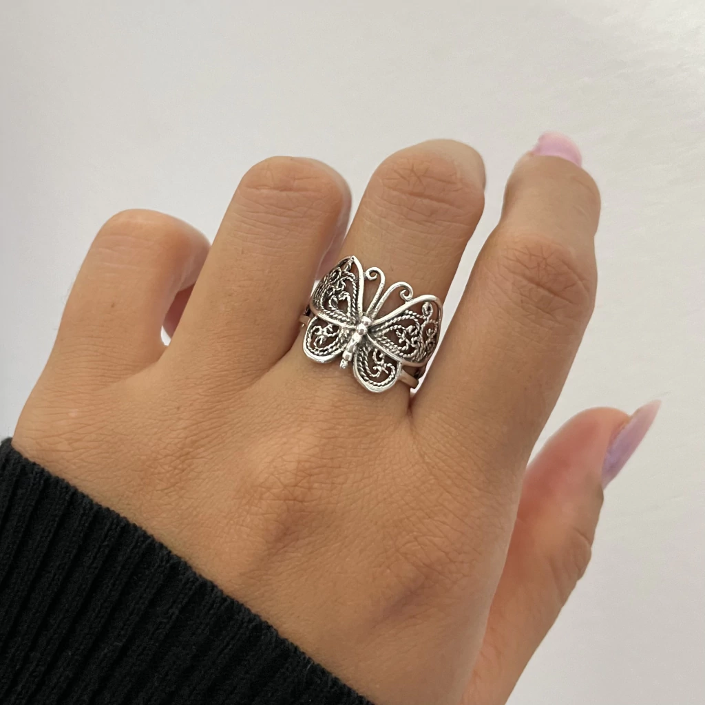 Perfeito para complementar seu estilo, este anel promete se tornar seu acessório favorito, sendo ideal para qualquer ocasião. Deixe sua marca com a beleza única do Anel Borboleta Grande!