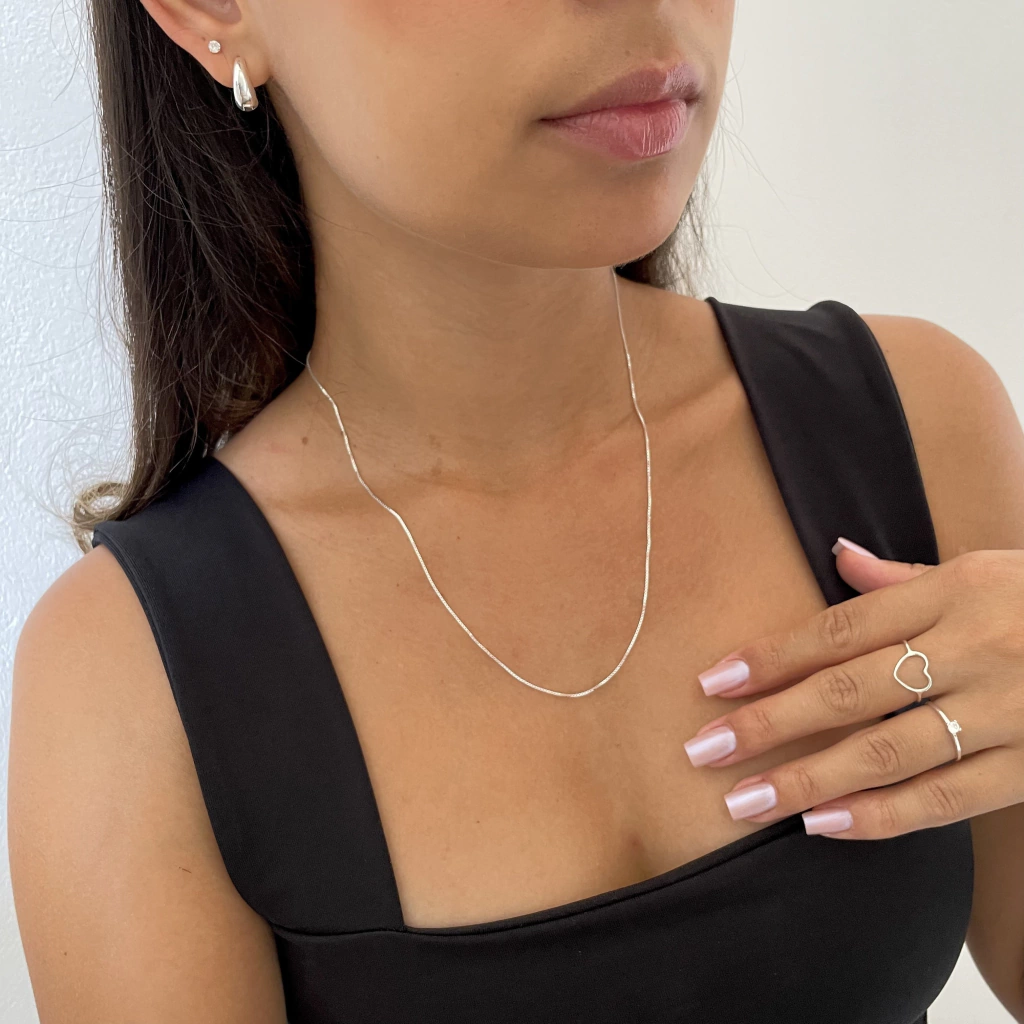 Corrente Veneziana - Prata 925 é a escolha ideal para quem busca elegância e versatilidade em acessórios. Com seu design sofisticado e moderno, essa corrente se destaca, trazendo um toque especial a qualquer produção.