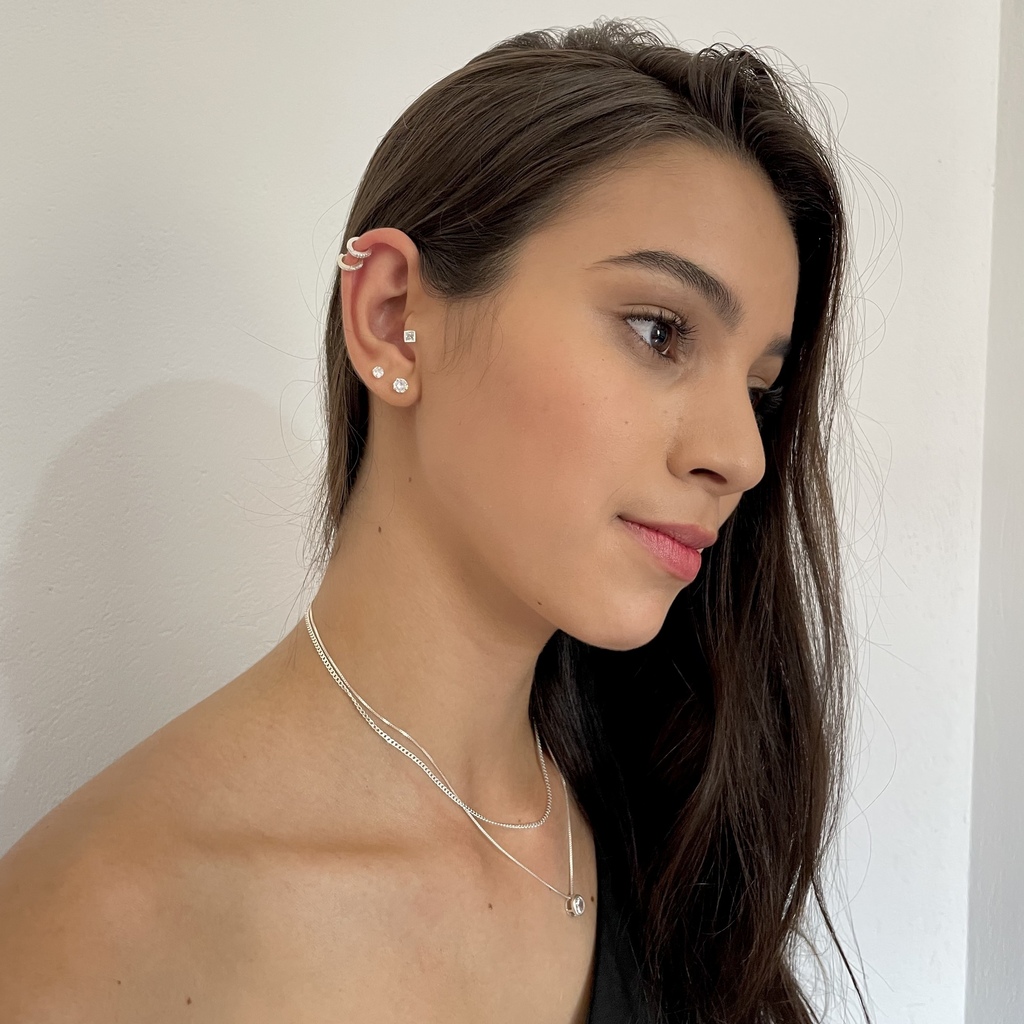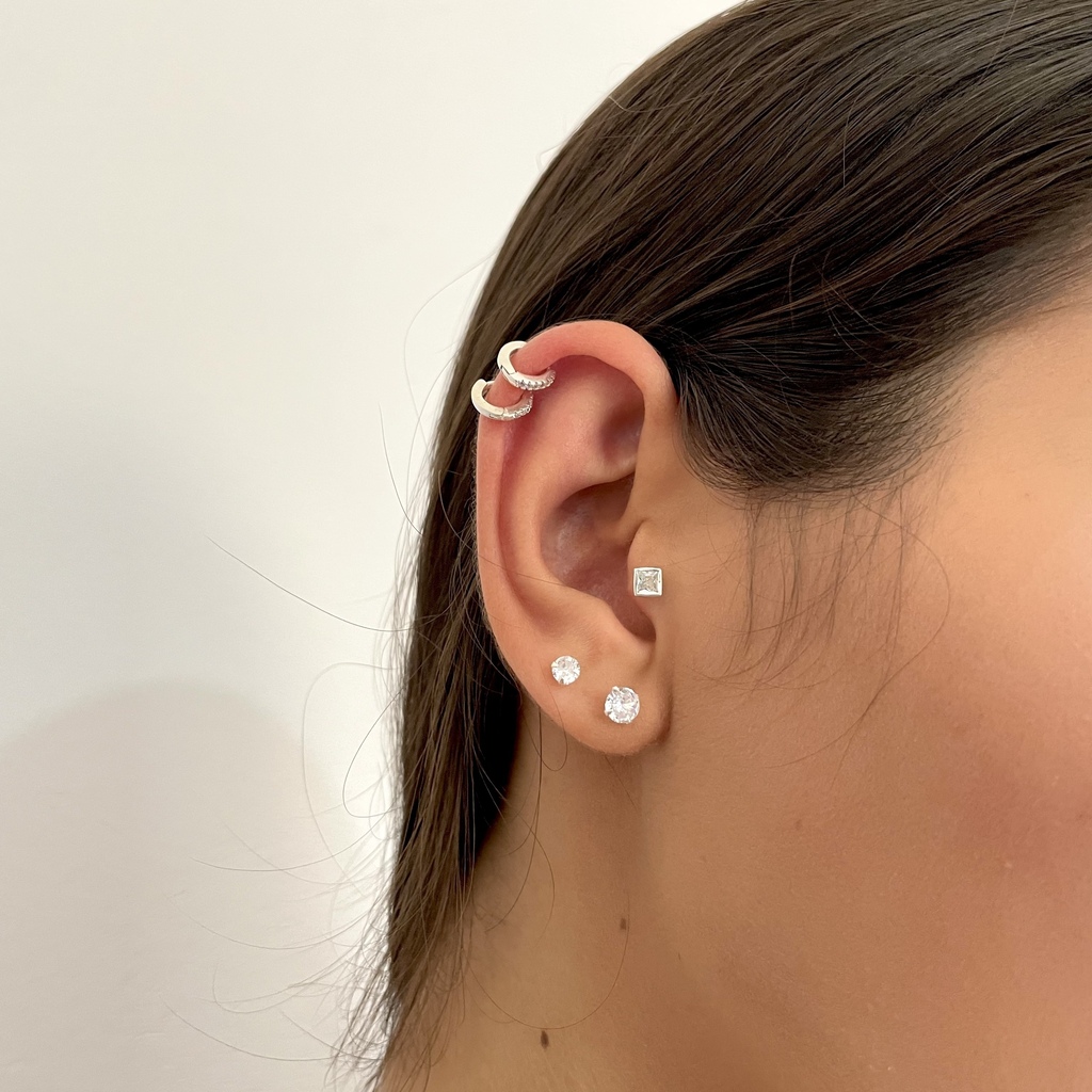 Piercing trágus zircônia quadrada - prata 925 é a peça que vai elevar seu estilo a um novo nível! Com um design moderno e sofisticado, este piercing destaca-se pela zircônia quadrada que brilha intensamente, trazendo um toque de glamour ao seu visual.